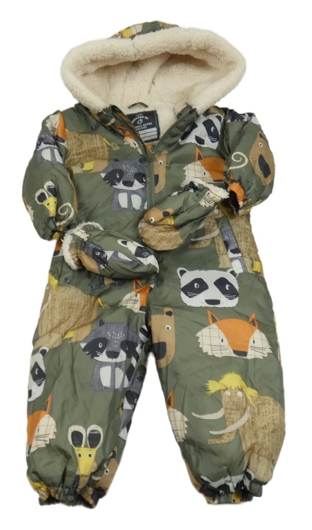 Khaki šušťáková zimná kombinéza so zvířaty a kapucí + rukavice George