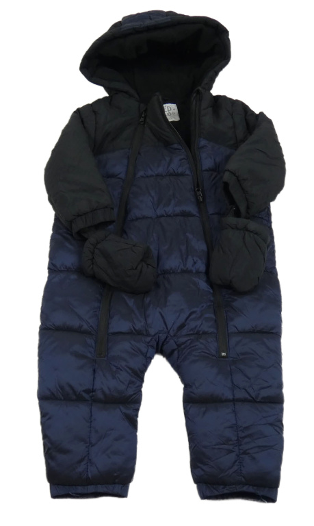 Tmavomodro-čierna metalická šušťáková zimná kombinéza s kapucí + rukavice F&F