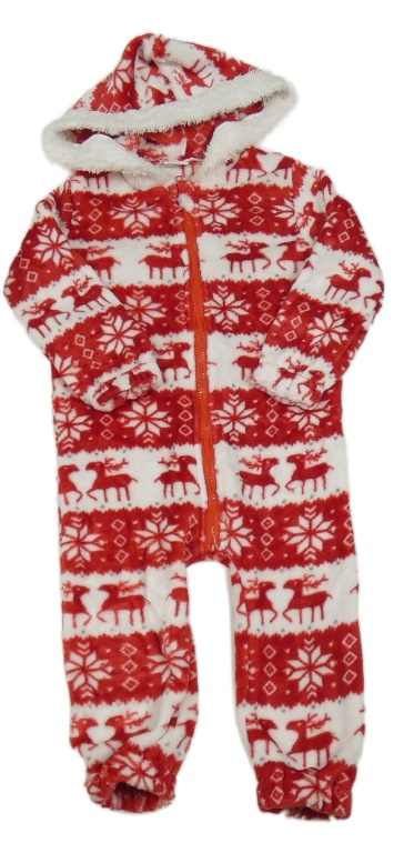 Čierno-biela vzorovaná chlpatá kombinéza s kapucňou