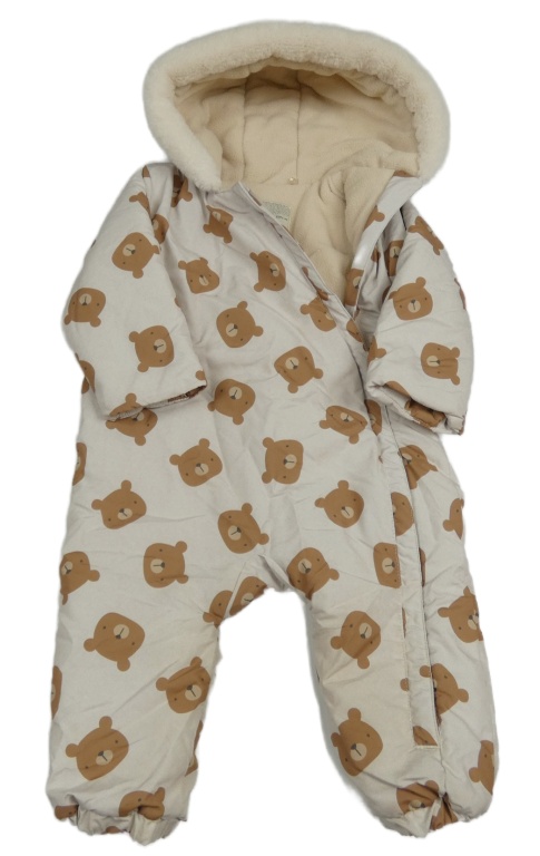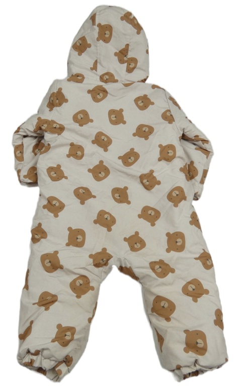 Béžová šušťáková zimná kombinéza s medveďmi a kapucňou Tu