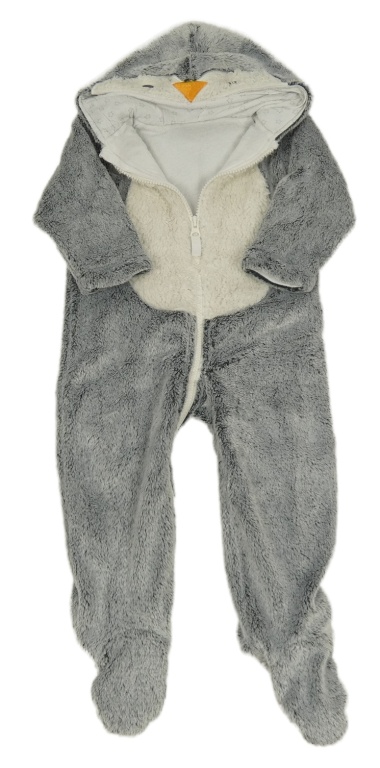 Sivo-biela chlpatá podšitá kombinéza s kapucí - tučňák Nutmeg