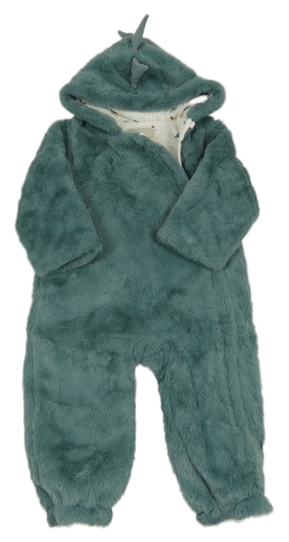 Zelená chlpatá zateplená kombinéza s kapucňou s ostny Tu