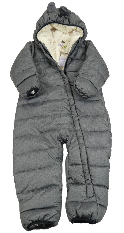 Nové - Tmavosivá melírovaná šušťáková zimná kombinéza s kapucňou s medvěďom Lily & Dan