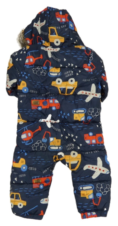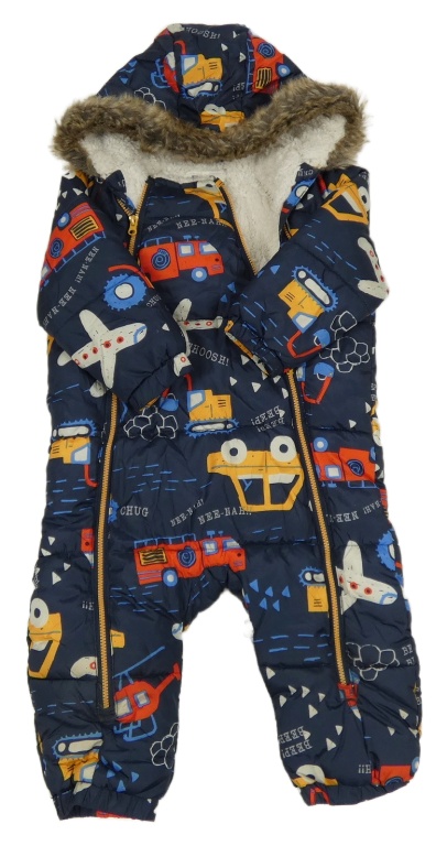 • Tmavomodrá prešívaná šušťáková zimná kombinéza s motorovými prostředky a kapucňou s kožešinou F&F