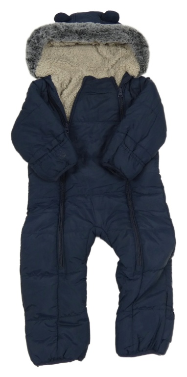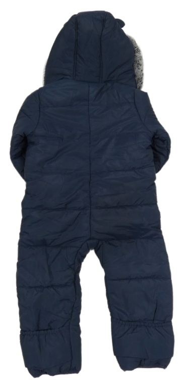 Tmavomodrá prešívaná šušťáková zimná kombinéza s kapucňou s kožešinou George