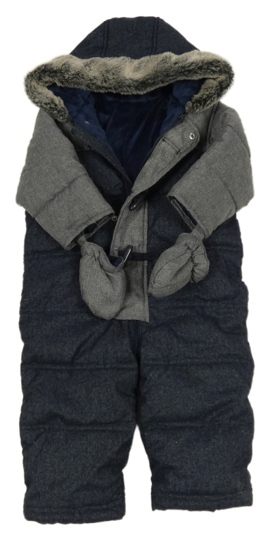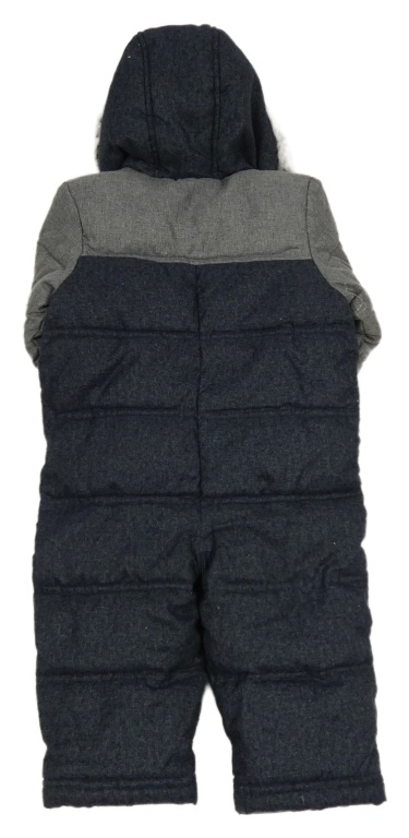 Tmavomodro-sivá melírovaná šušťáková zimná kombinéza s kapucí + rukavice Mothercare