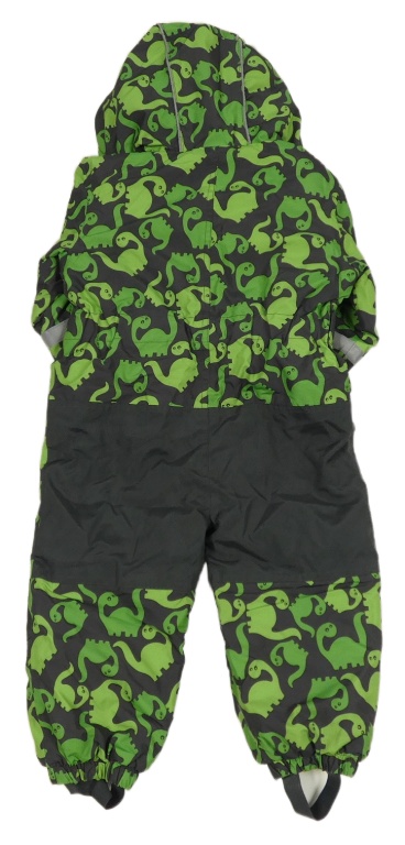Sivá šušťáková zimná kombinéza s dinosaurami a kapucňou Topolino