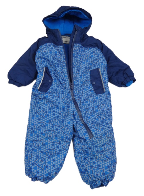 Modro-sivá vzorovaná šušťáková zimná kombinéza s medveďmi a kapucňou Lupilu