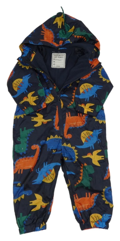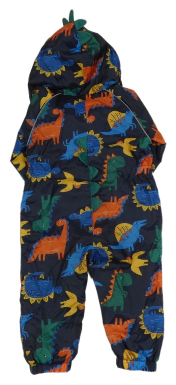 Tmavomodro-farebná šušťáková jarná kombinéza s dinosaurami a kapucňou