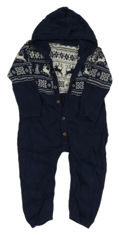 Tmavomodro-biela pletená kombinéza so vzorom a kapucňou George