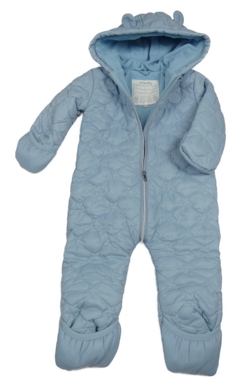 Svetlomodrá prešívaná šušťáková zimná kombinéza s hviezdičkami a nášivkou a kapucňou s uškami RIVER ISLAND