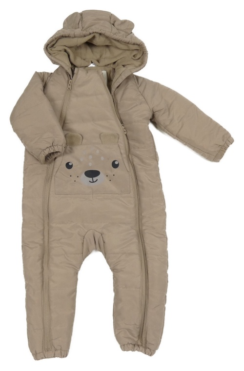 Hnedá šušťáková zimná kombinéza s medvěďom a kapucňou Orsolino