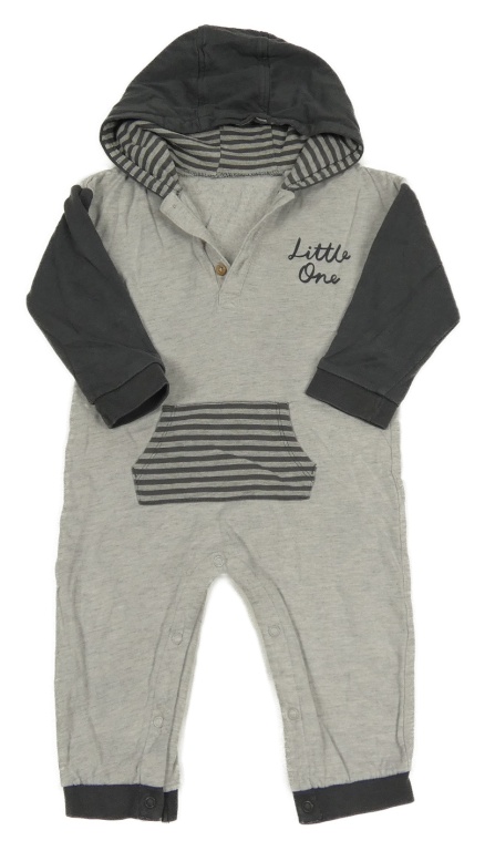 Sivo-tmavosivá melírovaná tepláková kombinéza s nápismi a vreckom a kapucňou Tu