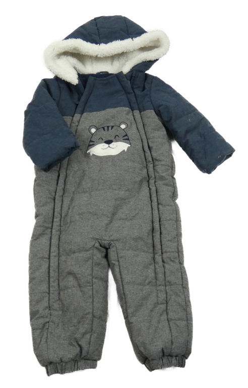 Sivo-tmavomodrá melírovaná softshellová zimná kombinéza s tigrom a kapucňou C&A