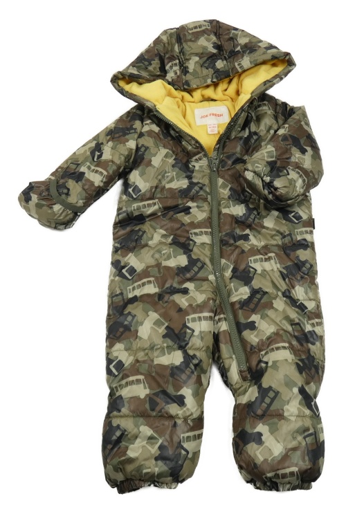 Kaki-hnedá vzorovaná šušťáková zimná kombinéza s kapucňou