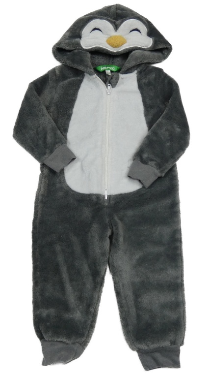 Sivo-biela plyšová kombinéza s kapucí - tučňák