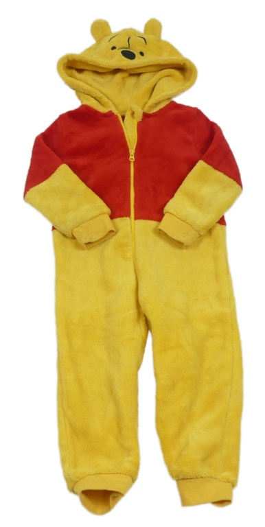 Červeno-žltá chlpatá kombinéza s kapucí - Medvídek Pú Disney