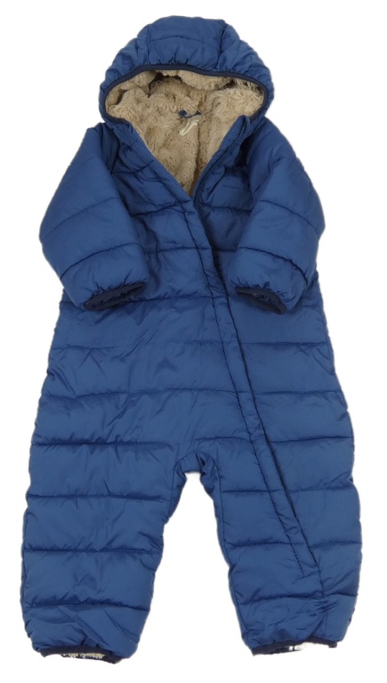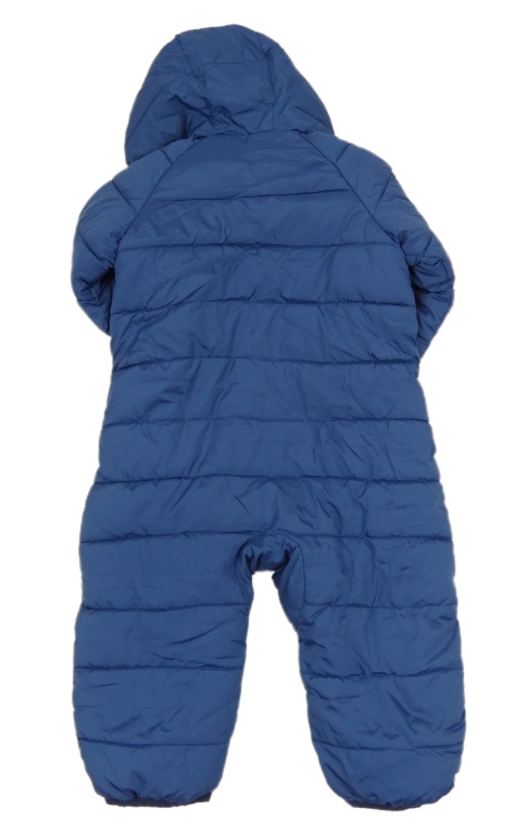 Modrá šušťáková prešívaná zimná kombinéza s kapucňou