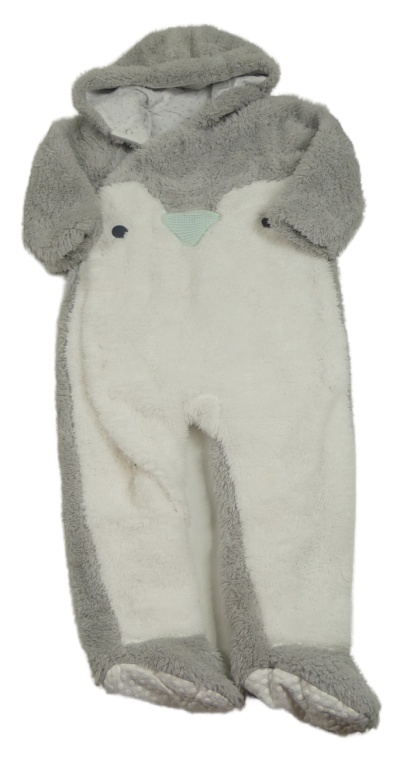 Bielo-sivá chlpatá kombinéza s ňufáčikom a kapucňou Mothercare
