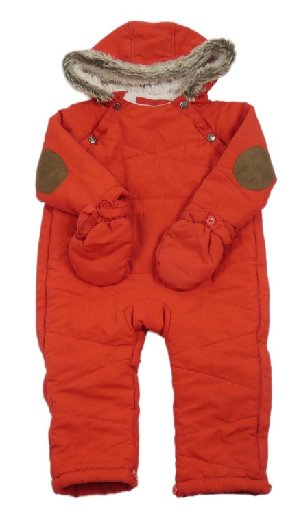 Červená šušťáková zimná kombinéza s kapucňou s kožešinou + rukavice Tu