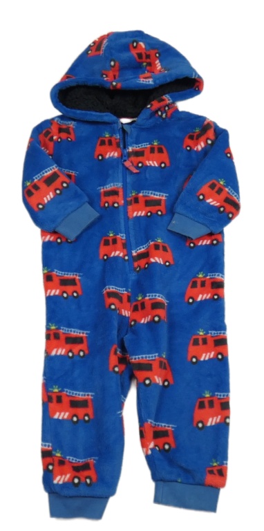 Modrá chlpatá kombinéza s hasičskými autami a kapucňou M&S