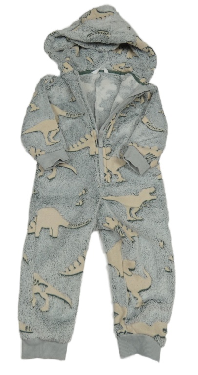 Bielo-zelená melírovaná chlpatá kombinéza s dinosaurami a kapucňou M&S