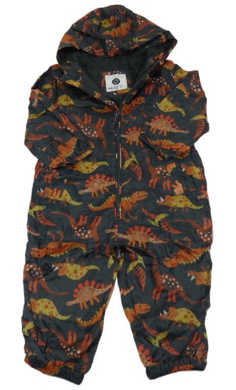 Antracitová šušťáková jesenná kombinéza s dinosaurami a kapucňou Tu