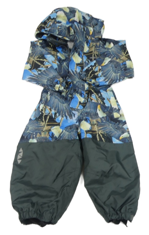 Modro-tmavosivá šušťáková jesenná kombinéza s orly a ukrývací kapucňou