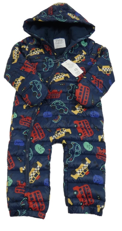Nové - Tmavomodrá šušťáková zimná kombinéza s autami a kapucňou F&F