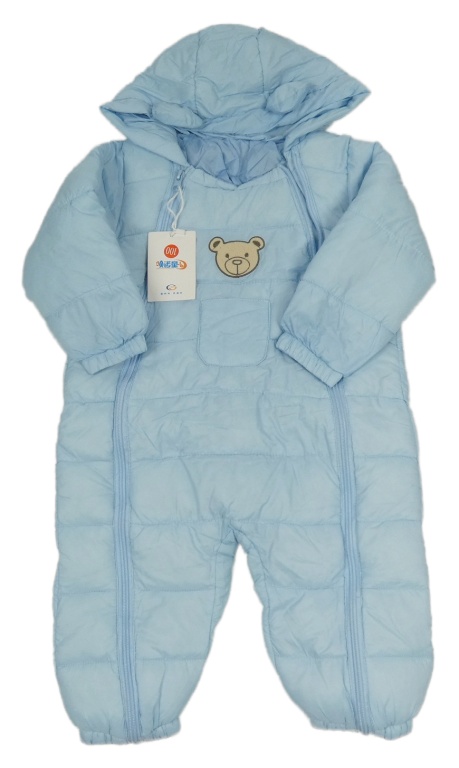 Nové - svetlomodrá prešívaná šušťáková zimná kombinéza s medvedíkom a kapucňou s uškami