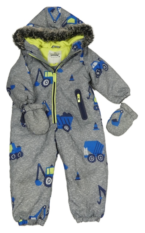 Sivá šušťáková zimná kombinéza s traktormi a kapucí + rukavice F&F