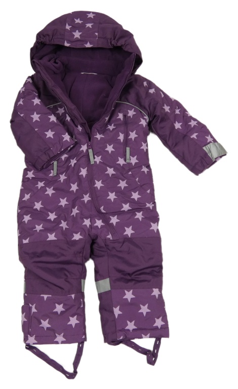 Fialová šušťáková zimná kombinéza s hviezdičkami a kapucňou Smile