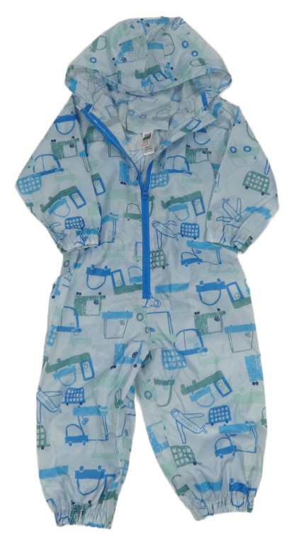 Svetlomodrá šušťáková kombinéza s autami a kapucňou Dunnes