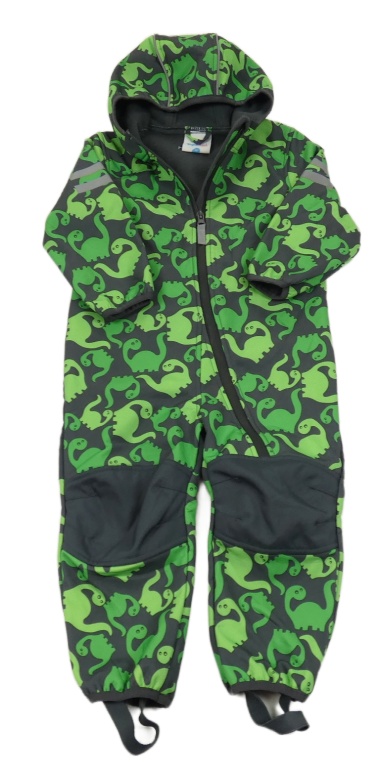 Tmavosivá softshellová kombinéza s dinosaurami a kapucňou Topomini