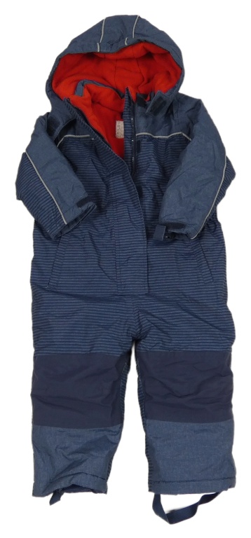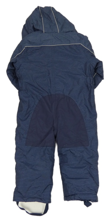 Tmavomodro-pruhovaná šušťáková zimná kombinéza s kapucňou