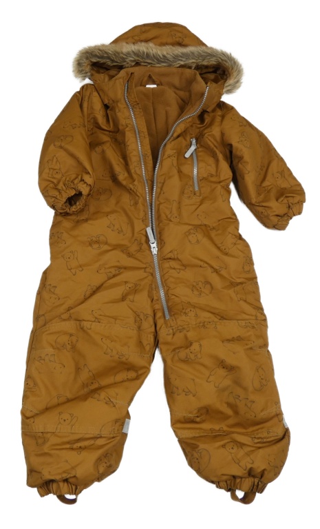 Béžová šušťáková zimná kombinéza s medvedíkmi a kapucňou H&M