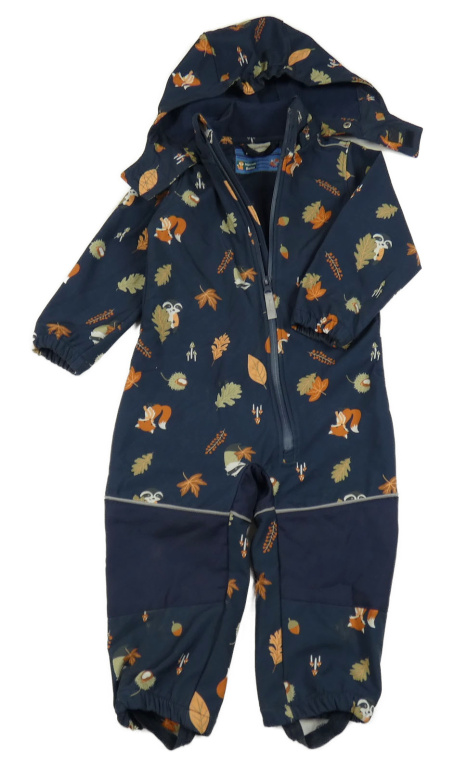 Tmavomodrá softshellová kombinéza s liškami, listy a kapucňou Impidimpi