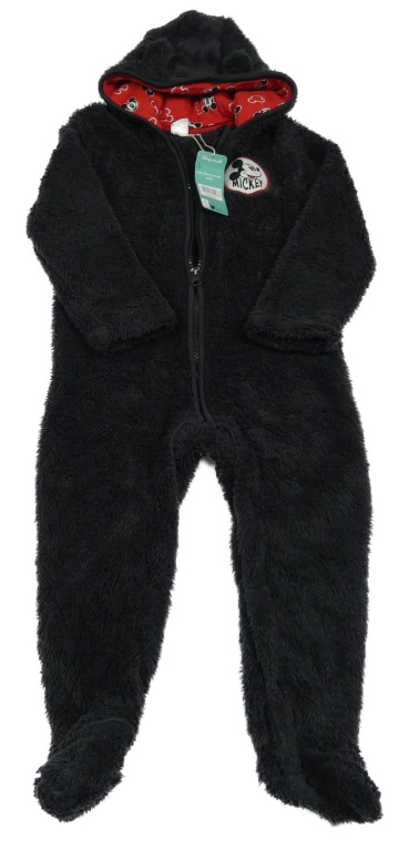Nové - Čierna chlpatá kombinéza s Mickeym a kapucňou Disney
