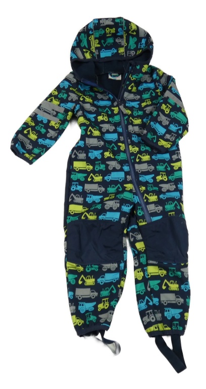 Tmavomodrá softshellová kombinéza so stavebními stroji Topomini