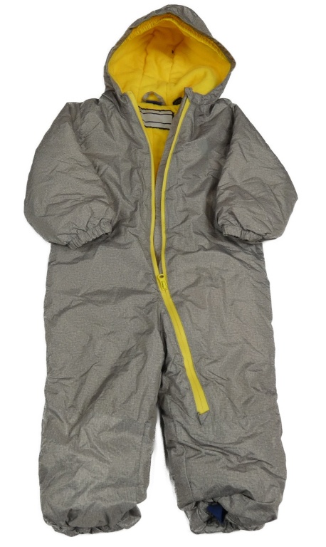 Béžovo-sivá melírovaná šušťáková zimná kombinéza s medvedíkom a kapucňou lupilu