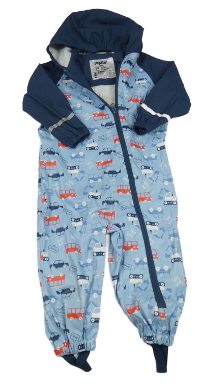 Světlemodro-tmavomodrá vodeodolná jarná kombinéza s autami a kapucňou Lupilu