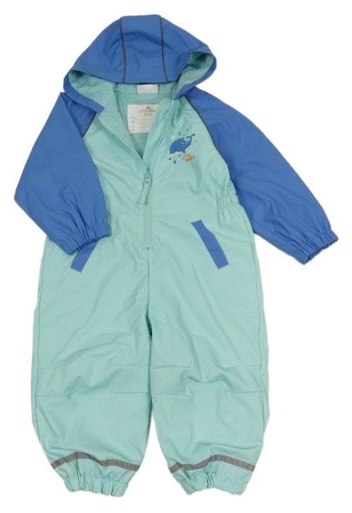 Světlezeleno-modrá nepromokavá jarná kombinéza s rybou a kapucňou Orsolino