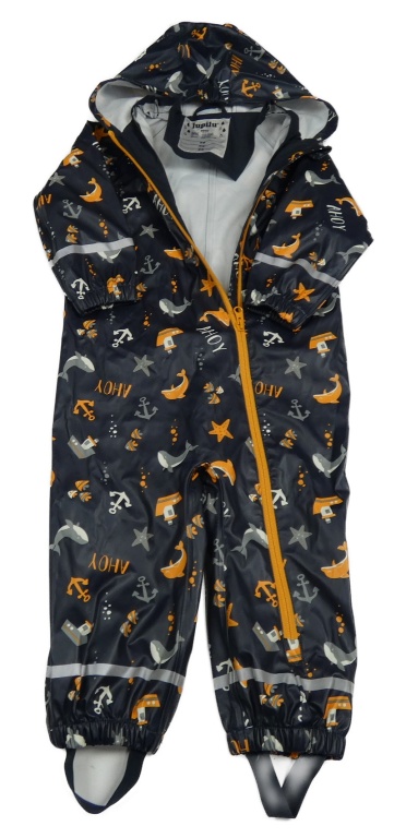 Tmavomodrá nepromokavá kombinéza s velrybami a kapucňou Lupilu