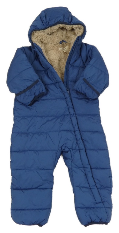 Modrá šušťáková zimná kombinéza s kapucňou