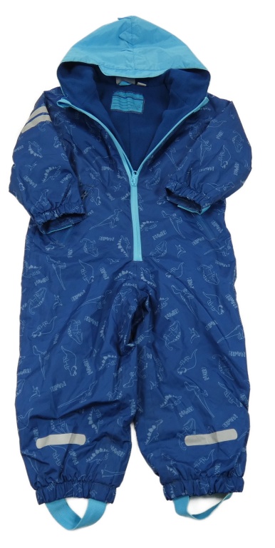 Modrá šušťáková jarná kombinéza s dinosaurami a kapucňou Impidimpi