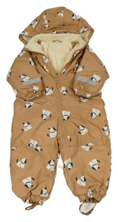 Hnedá šušťáková zimná kombinéza s pejsky a kapucňou H&M