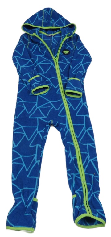 Cobaltovoě modro-modrá vzorovaná fleecová kombinéza s medvedíkom a kapucňou lupilu