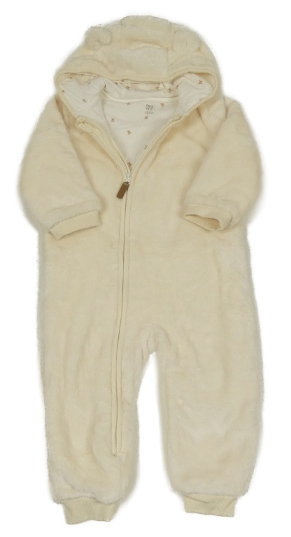 Smotanová plyšová lehce zateplená kombinéza s kapucňou F&F