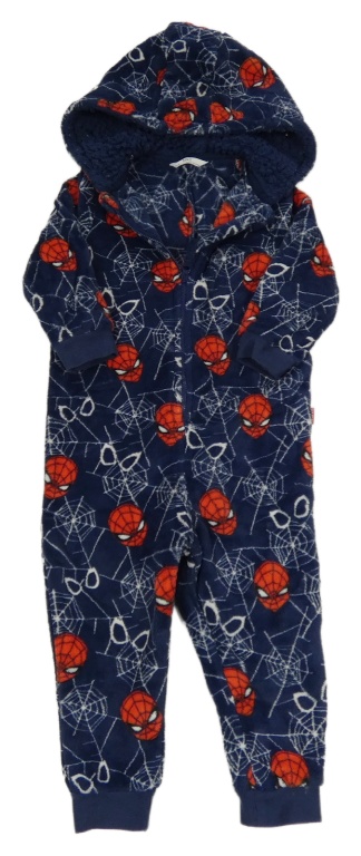 Tmavomodrá chlpatá kombinéza so Spider-manem a kapucňou M&S