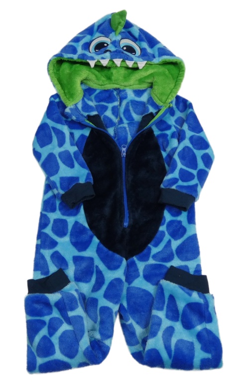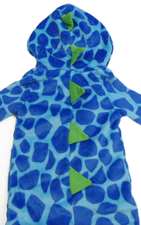 Modrá vzorovaná chlpatá kombinéza s kapucňou s ostny - dinosaurus